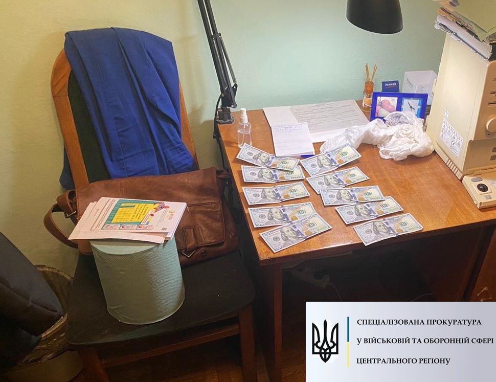 За процесуального керівництва Спеціалізованої прокуратури у військовій та оборонній сфері Центрального регіону затримано голову військово-лікарської комісії одного з об’єднаних міських військових комісаріатів Київської області під час одержання неправомірної вигоди в розмірі 1000 доларів США.