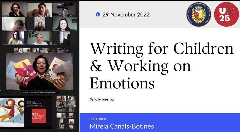 29 листопада 2022 р. викладачі і здобувачі освіти Полтавського національного педагогічного університету імені В. Г. Короленка прослухали публічну лекцію «Writing for Children & Working on Emotions» заступниці проректора з наукової роботи та передачі знань Університету Вік – Центрального Університету Каталонії (Іспанія), викладачки англійської літератури, професорки Міреї Каналс-Ботінес.