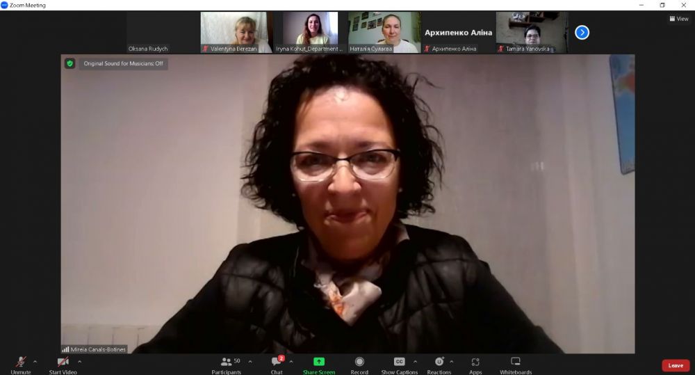 Пані Мірея Каналс-Ботінес – авторка низки дитячих казок. Лекторка представила свої твори аудиторії, а також ознайомила з особливостями використання технології сторітелінг. Слухачі лекції проявили жвавий інтерес до окресленої проблематики. Завершилася зустріч активним обговоренням представлених проблем. Всі учасники освітнього заходу спілкувалися англійською мовою. Така форма навчання є важливим елементом неформальної освіти, сприяє обміну кращими освітніми та науковими практиками, розширює взаємодію із закордонними партерами.