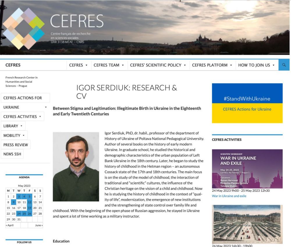Професор кафедри історії України Полтавського національного педагогічного університету імені В. Г. Короленка Ігор Сердюк став асоційованим дослідником Французького науково-дослідного центру гуманітарних і соціальних наук (CEFRES — French Research Center in Humanities and Social Sciences). Цей центр був заснований у Празі в 1991 р. як мережа дослідницьких команд між Францією, Чеською Республікою, Угорщиною, Польщею та Словаччиною.