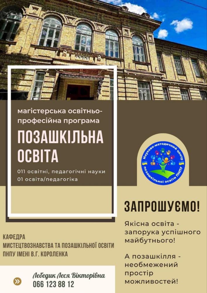 Магістерська освітньо-професійна програма Позашкільна освіта 7 червня 2023, 12:46 Автор: ПНПУ імені В.Г.Короленка