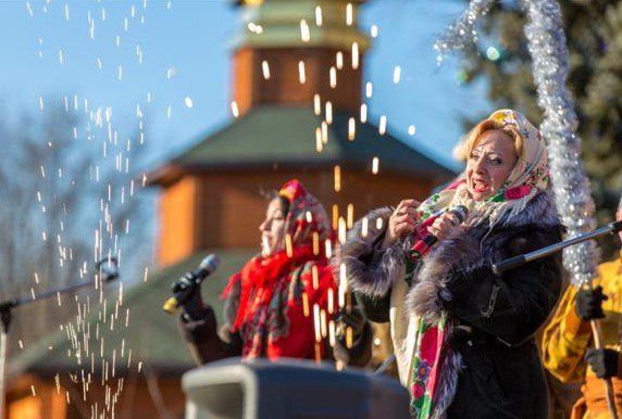 Гостей свята пригощали на польовій кухні. Зі сцени для них колядували дніпровські колективи та вертеп артистів театру ім.Шевченка.